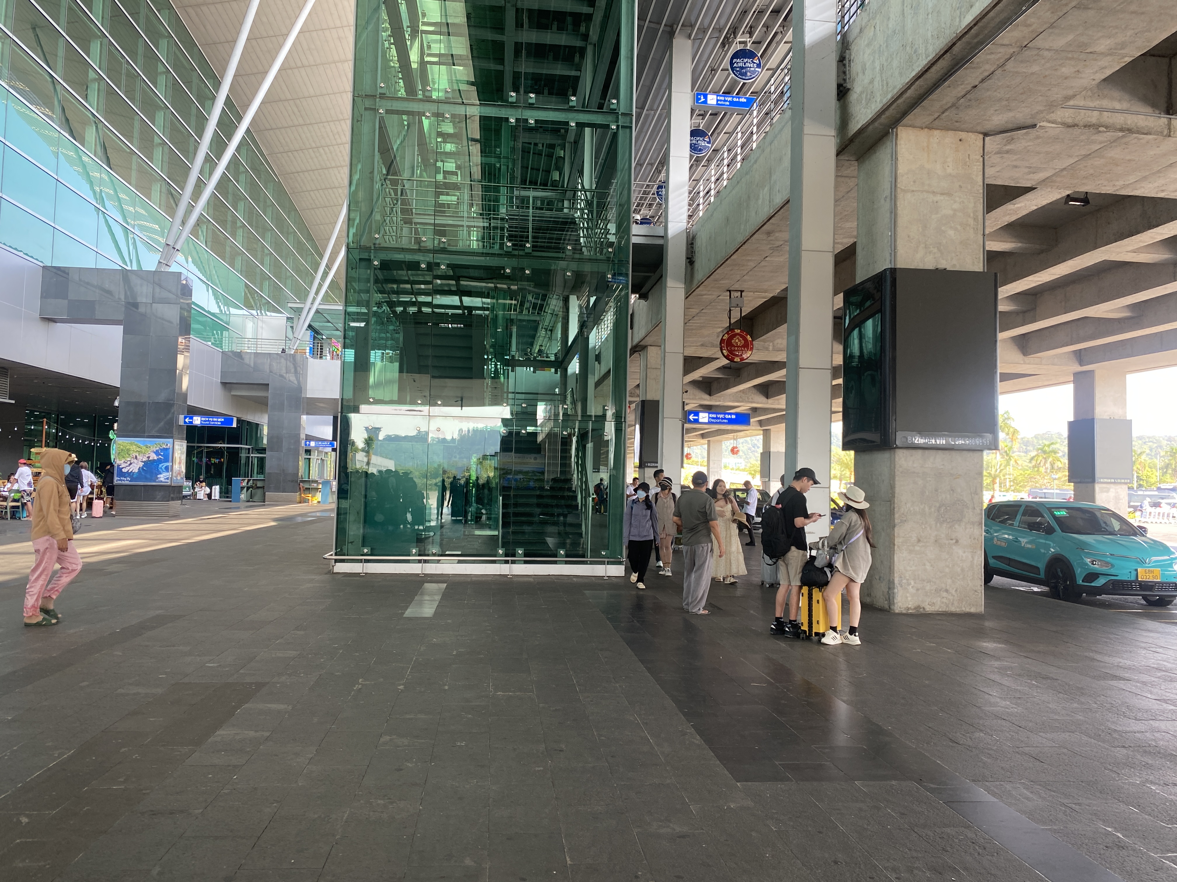 공항밖으로 나오는 문이 몇곳이 있는데요 공항밖으로 나오면 사람들 많이 모여있고 다양한 리조트들 간판붙어있고, 가게있는곳에 서 계시면 크라운플라자 셔틀버스 기사분께서 다가오세요, 그리고 크라운플라자 숙소에 묵냐고 물어보고 이름 적으신 후 셔틀버스로 이동합니다