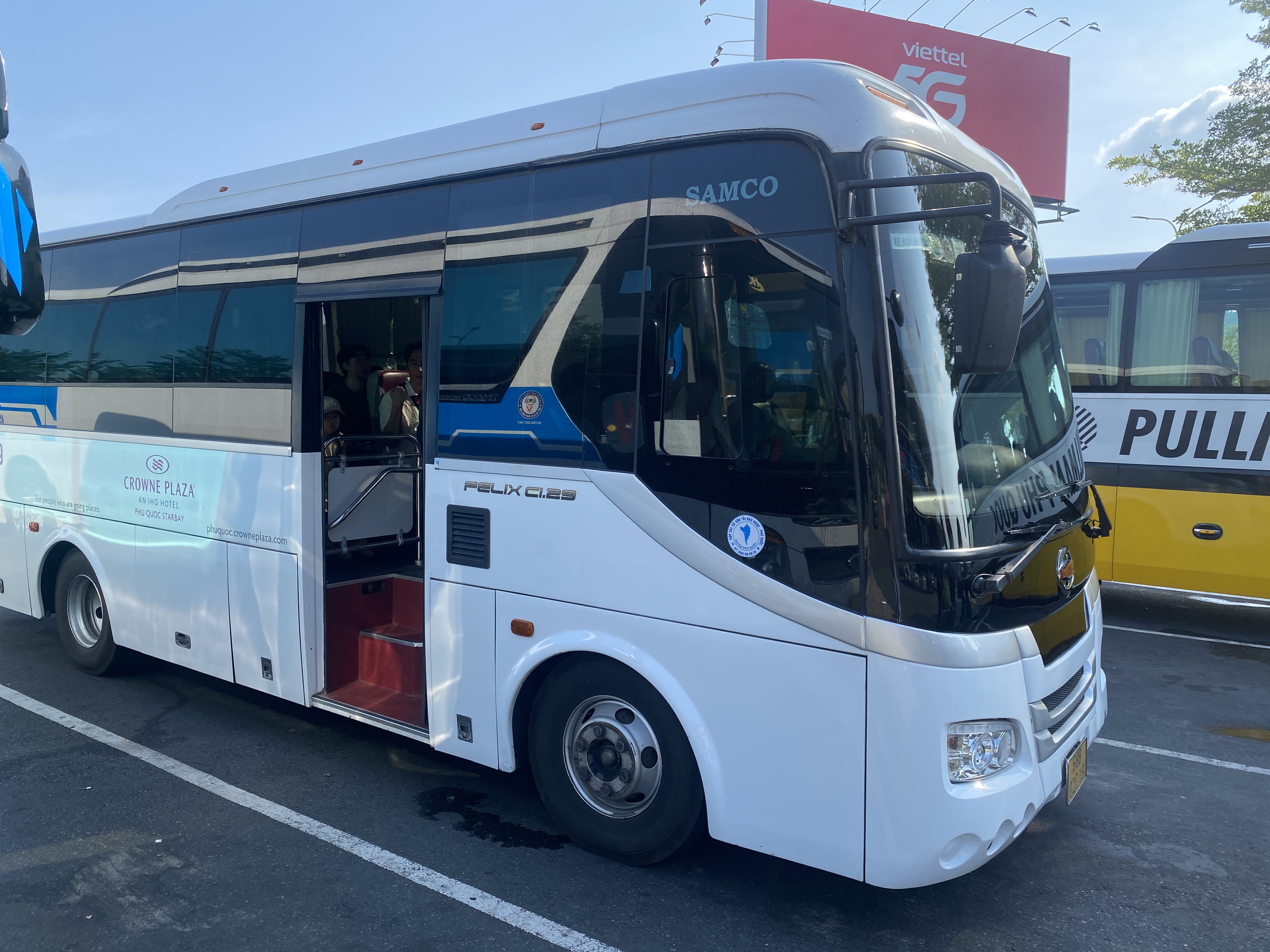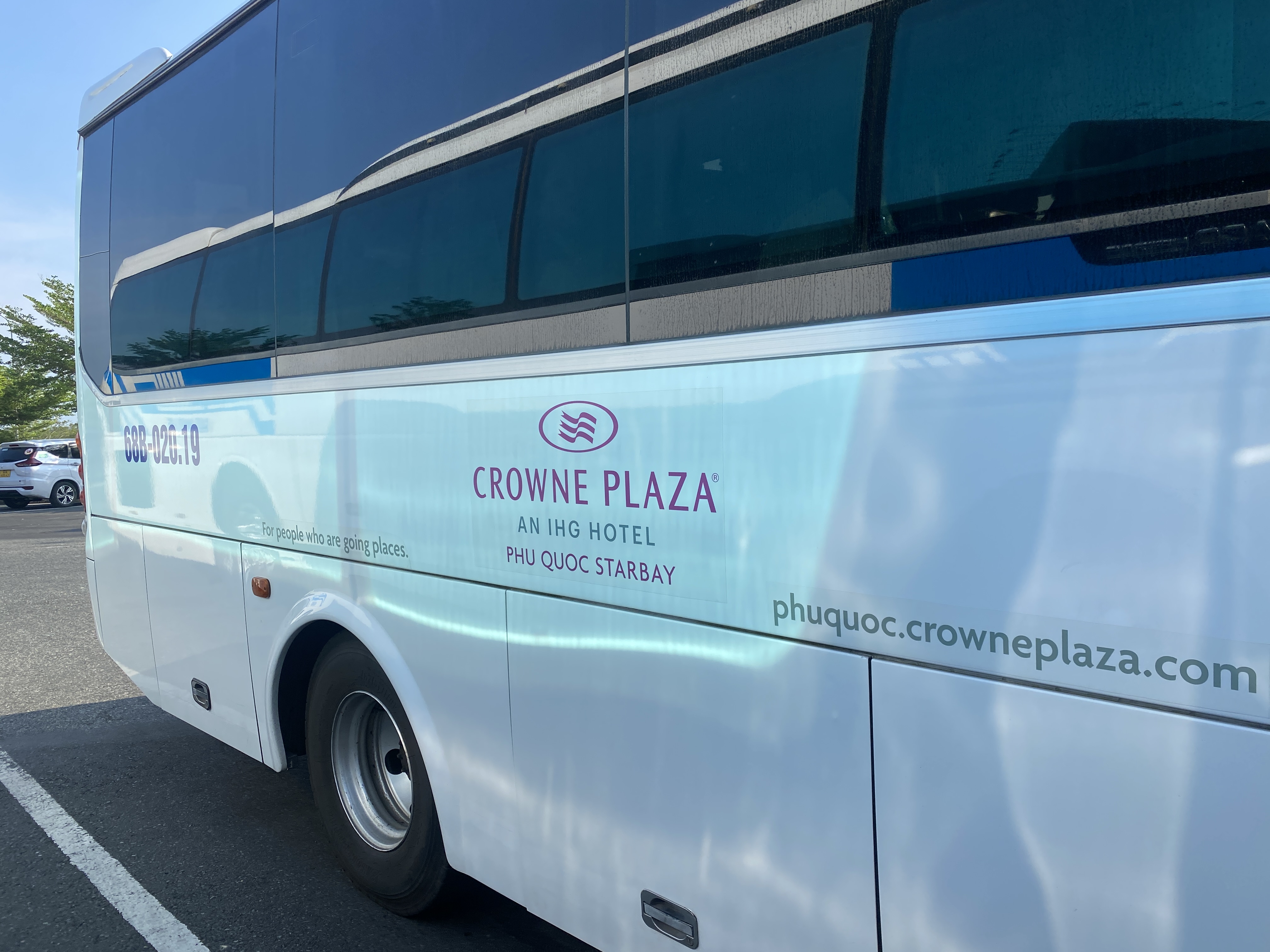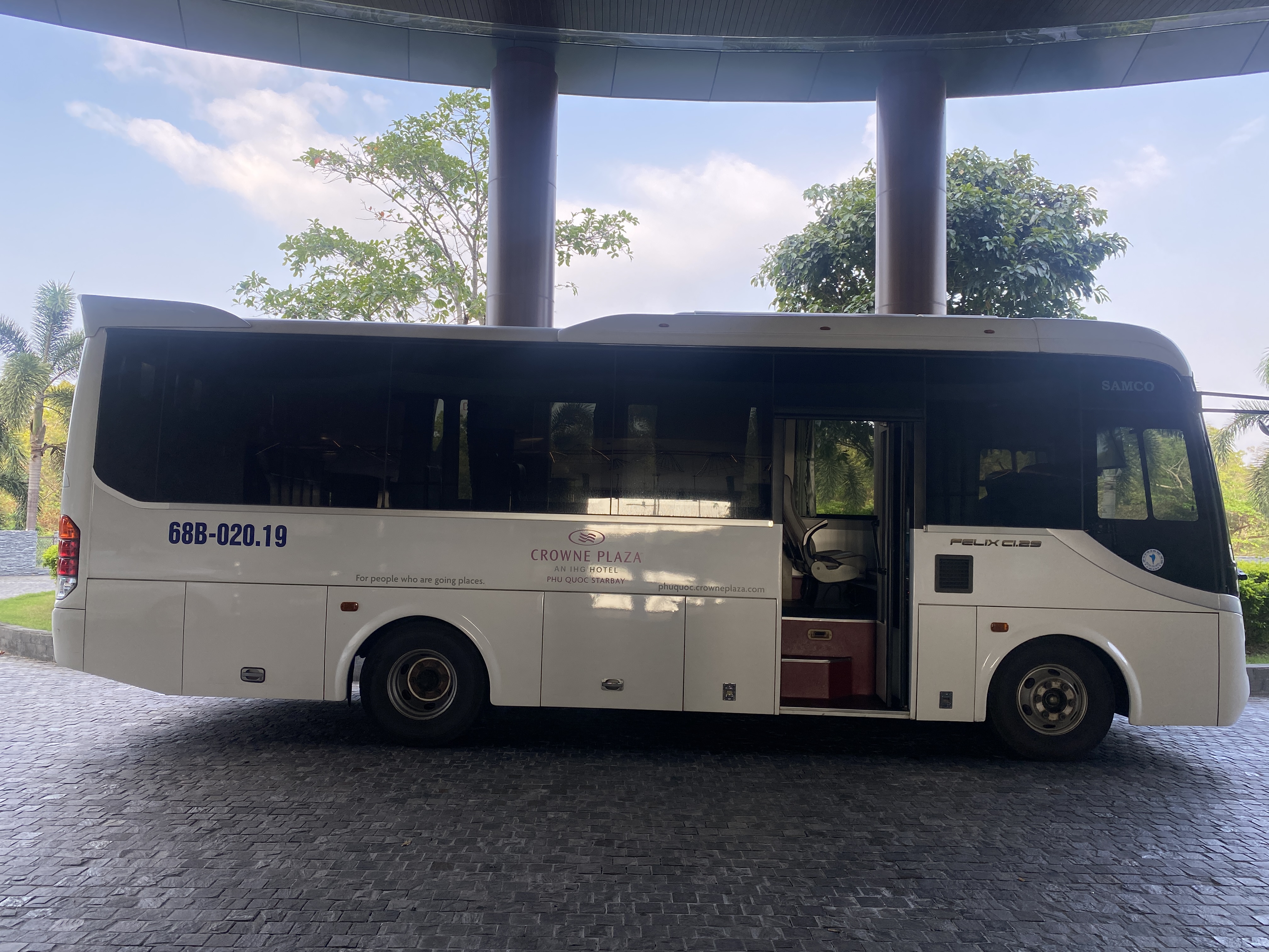 오후2시 푸꾸옥공항도착 > 오후3시20분 입국심사&수하물찾기 완료 > 오후3시45분 크라운플라자셔틀버스탑승객들 모임 > 오후 3시50분 크라운플라자 셔틀버스 탑승 > 오후4시 셔틀버스 출발 > 오후4시55분 크라운플라자호텔 도착